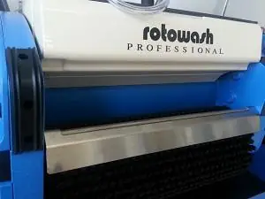 Applicazioni: agganciato anteriormente sulla barra di congiunzione delle fiancate macchina permette di limitare lo spruzzo dell’acqua in caduta durante il lavoro laddove necessità una particolare accortezza: ambienti domestici o, genericamente, in presenza di arredamento.